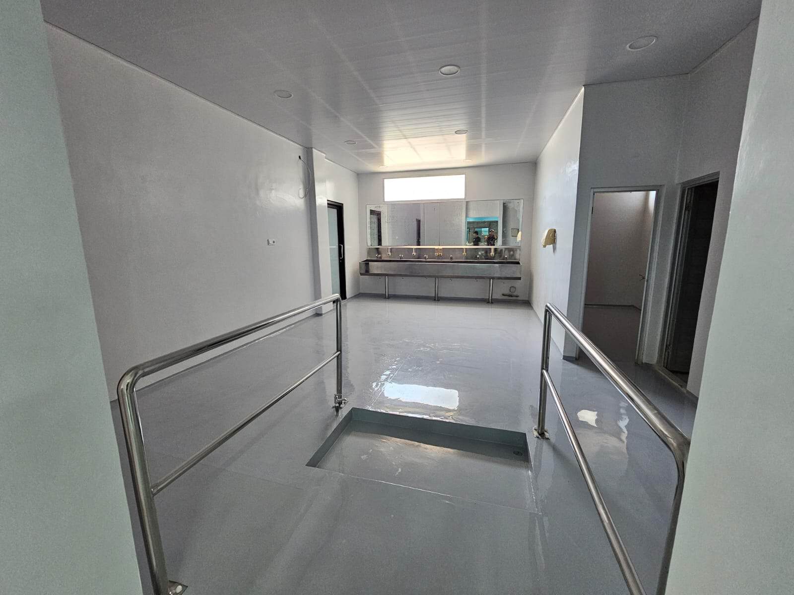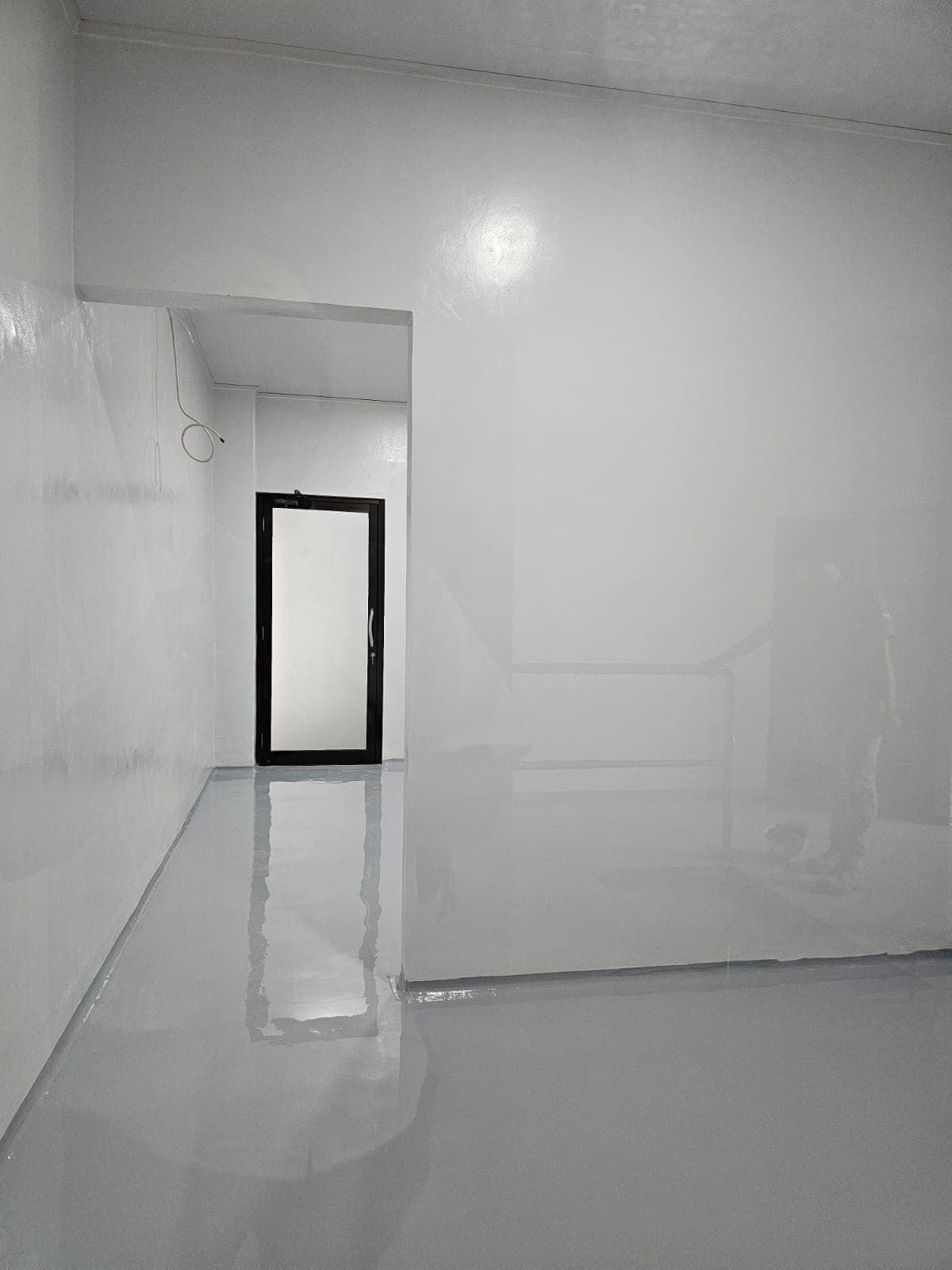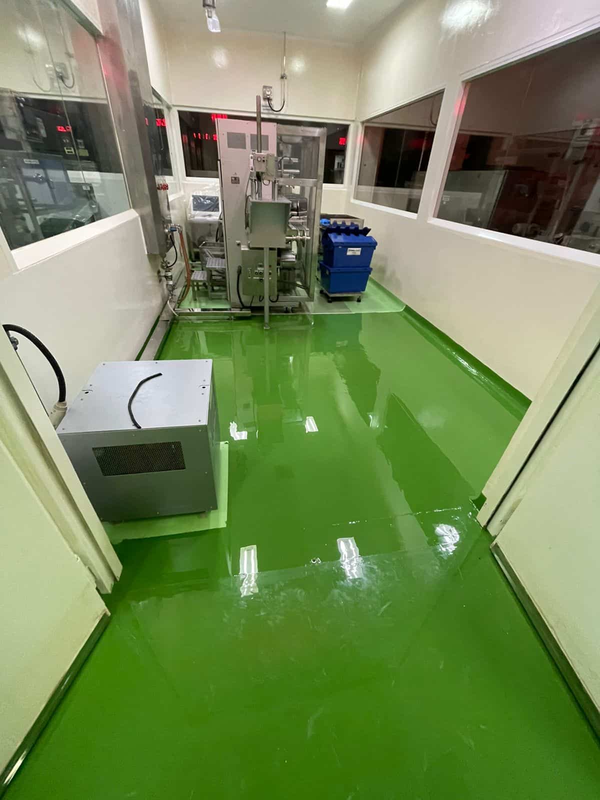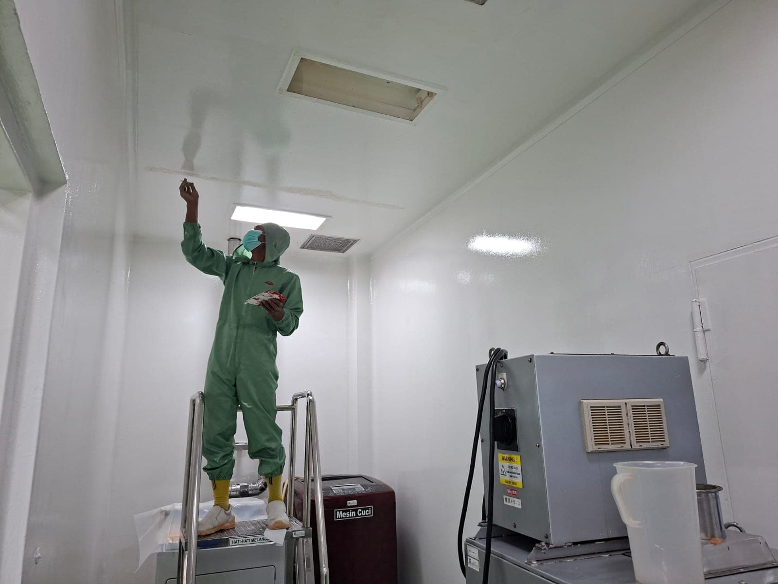 Proyek civil work komprehensif yang mencakup pembangunan struktur & konstruksi bangunan industri, pengembangan clean room untuk area produksi dengan standar kebersihan tinggi, aplikasi epoxy flooring untuk lantai produksi yang tahan lama dan mudah dibersihkan, penataan interior ruang kerja yang fungsional, serta pemasangan roof system yang optimal. Setiap tahap dikerjakan dengan standar keselamatan K3 dan kontrol kualitas ketat untuk memastikan hasil yang presisi dan sesuai kebutuhan operasional klien.