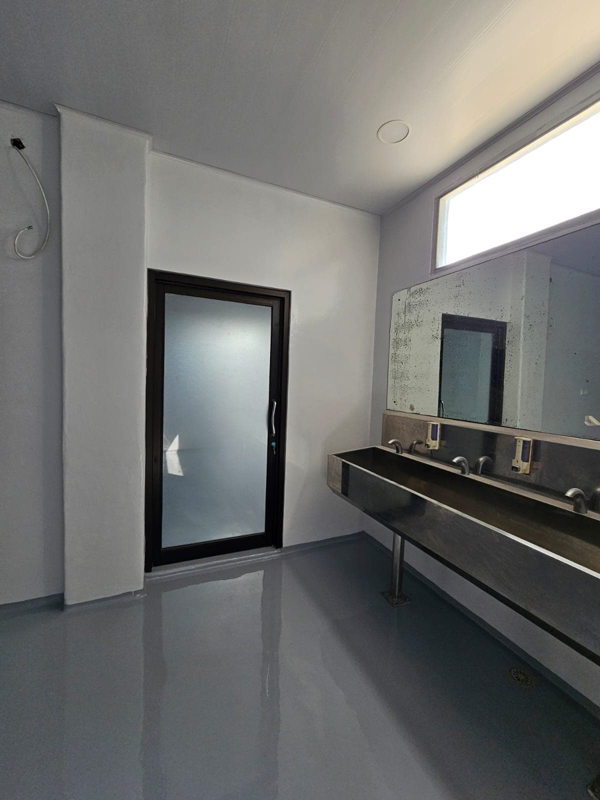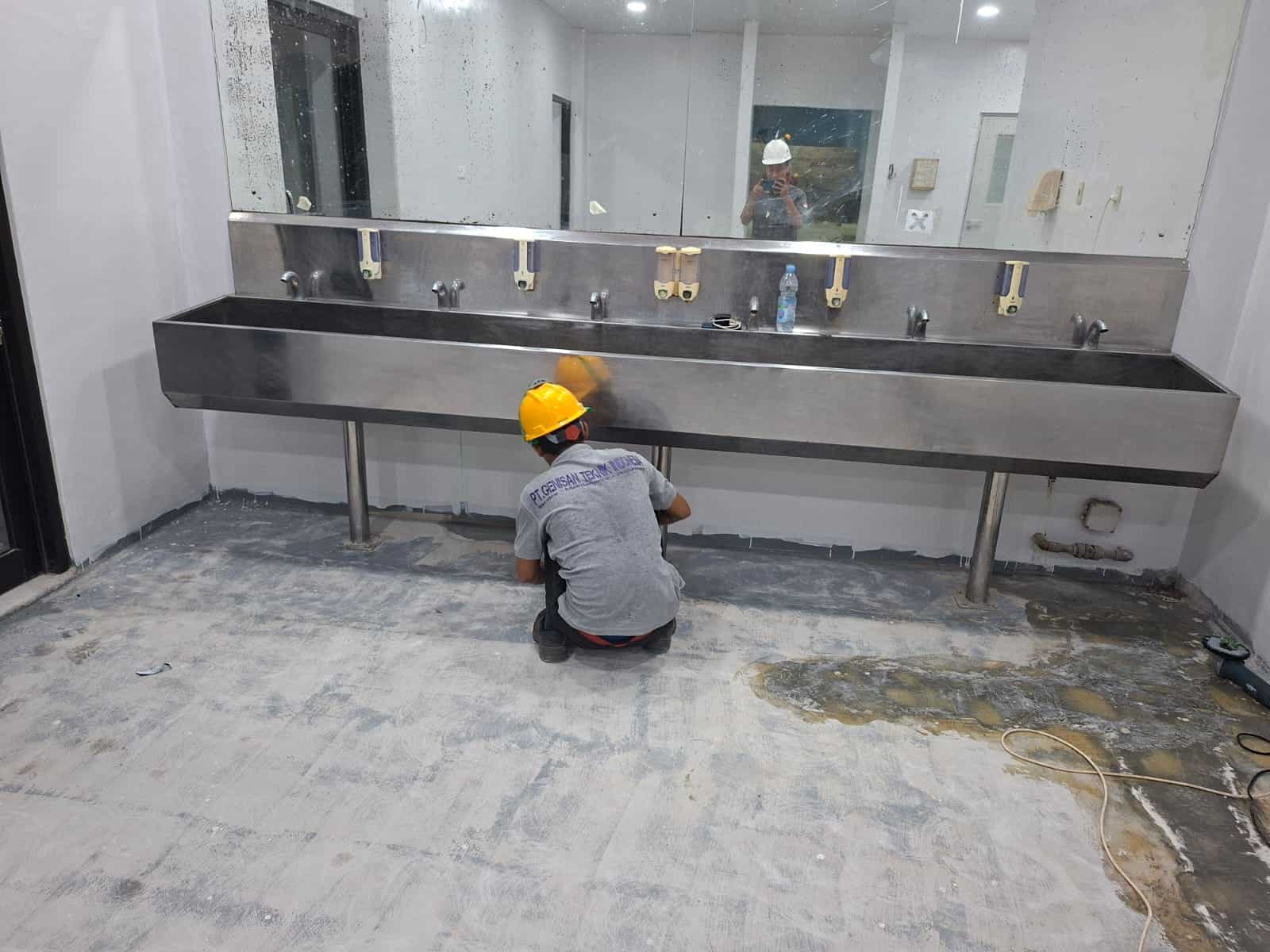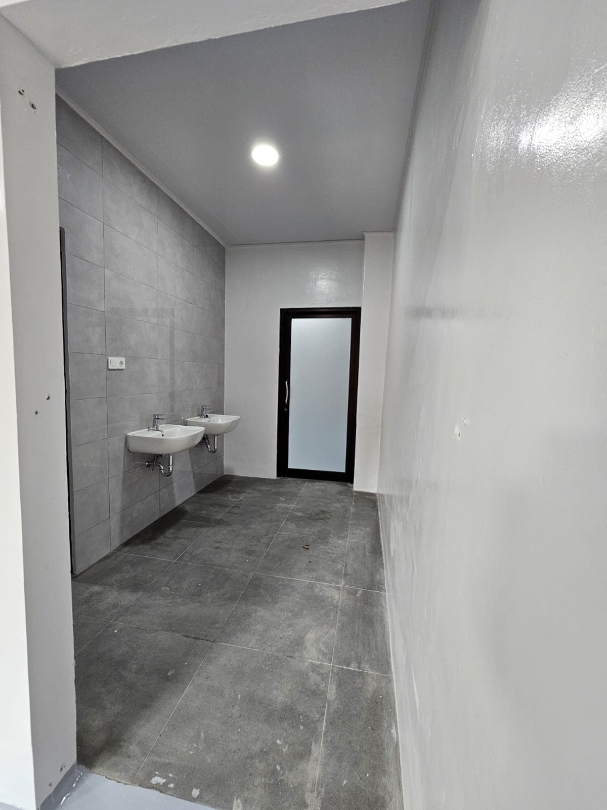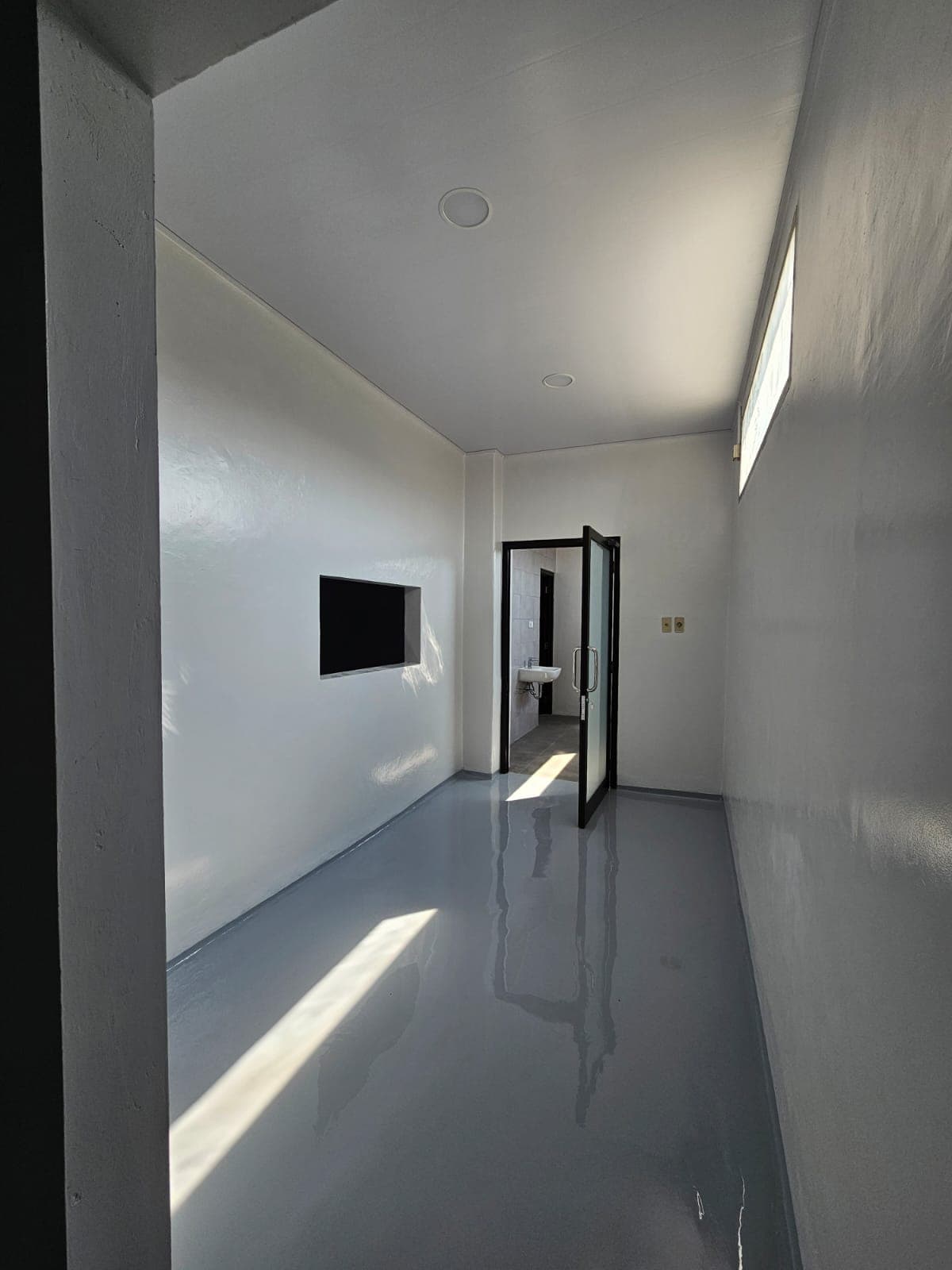 Proyek civil work komprehensif yang mencakup pembangunan struktur & konstruksi bangunan industri, pengembangan clean room untuk area produksi dengan standar kebersihan tinggi, aplikasi epoxy flooring untuk lantai produksi yang tahan lama dan mudah dibersihkan, penataan interior ruang kerja yang fungsional, serta pemasangan roof system yang optimal. Setiap tahap dikerjakan dengan standar keselamatan K3 dan kontrol kualitas ketat untuk memastikan hasil yang presisi dan sesuai kebutuhan operasional klien.